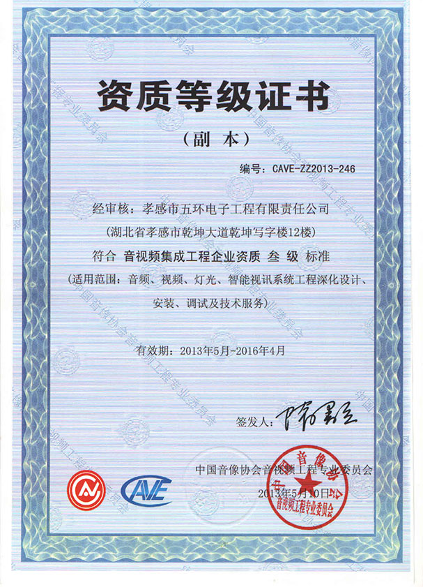 音視頻資質(zhì)等級(jí)證書(shū)(2013)